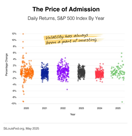 While no one can predict the future, and conditions can vary, history teaches us that enduring both gains and losses is typical in stock investing. Remember, a single week (or month) won’t define the market, and volatility is the price of admission.